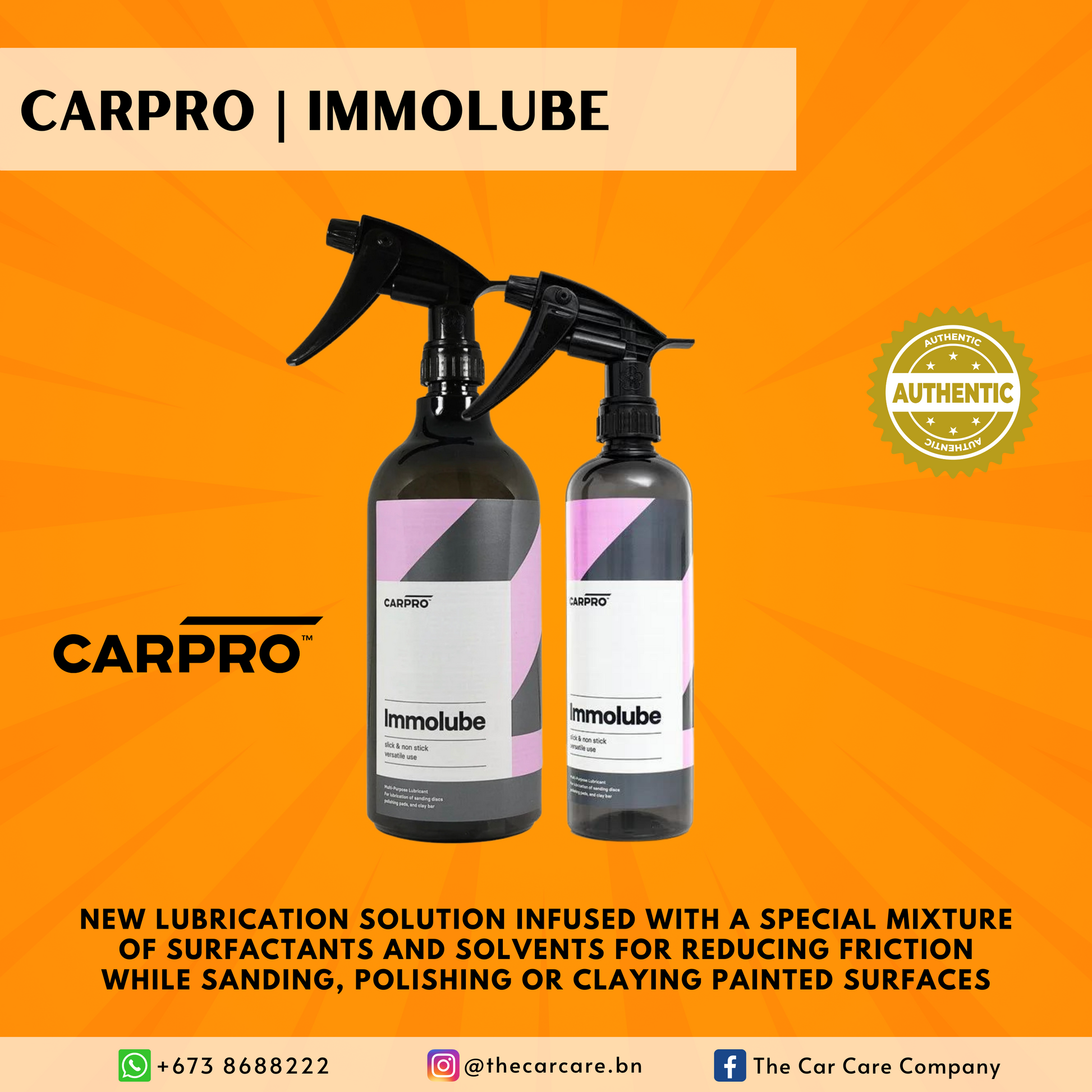 CARPRO Immolube is an excellent new lubrication solution infused with a special mixture of surfactants and solvents designed for reducing friction while sanding, polishing, or claying painted surfaces. Its non-stick formula offers enough viscosity to reduce unwanted digging and marring. Immolube has no protective polymers, no unwanted gloss enhancers, and is easy to remove with a wash or CARPRO Eraser wipe.