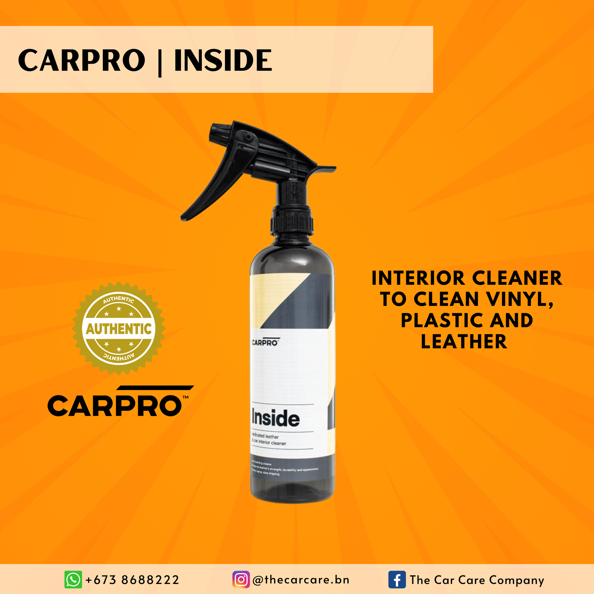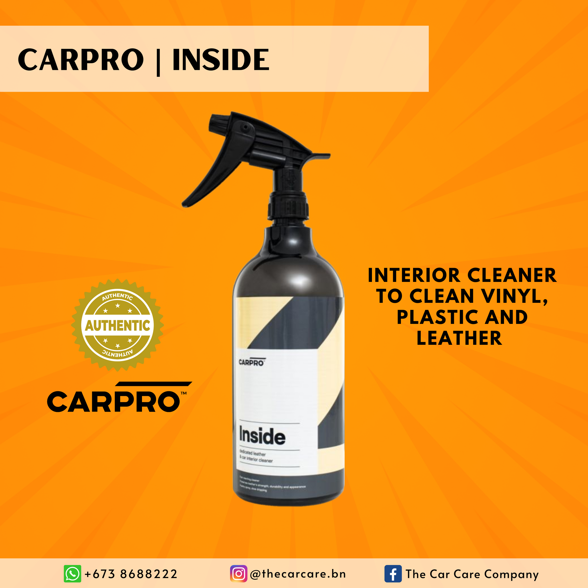 Introducing CARPRO Inside! An excellent new cleansing solution infused with organic essentials for vehicle interiors of many shapes and sizes! Inside is specially formulated to clean vinyl, plastic, finished leather and a variety of interior surfaces! Utilising a high foaming mix of proprietary surfactants and gentle detergents, CARPRO Inside is able to easily remove built up dirt, sweat, oils, and all manner of soiling on interior surfaces. The heavy foaming action allows perfect saturation of heavy dirt even when using a brush while the strong cleaners allow you to cut it 1:1 for typical soiling. Use as is for extra strength interior cleaning.