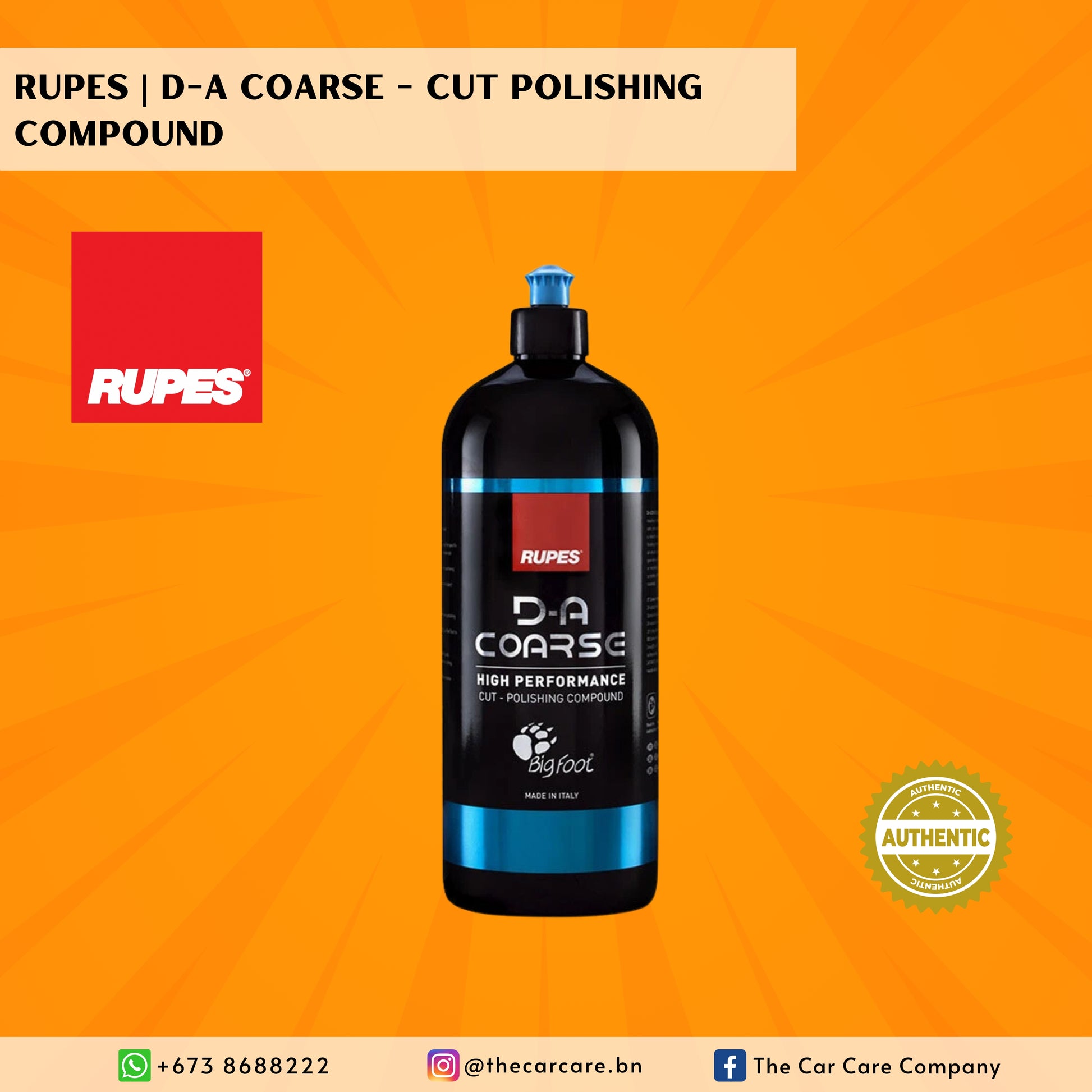 RUPES D-A COARSE is the latest high-performance compound from RUPES designed for maximum efficiency. This fast cutting compound is ideal for users who want quick defect removal and smooth user experience on every type of paint. The formulation is optimized to achieve the best performance if used with RUPES Coarse blue foam, DA wool pads, or coarse microfiber discs together with BigFoot Dual Action Polishers, including both random orbital and gear-driven tools.
