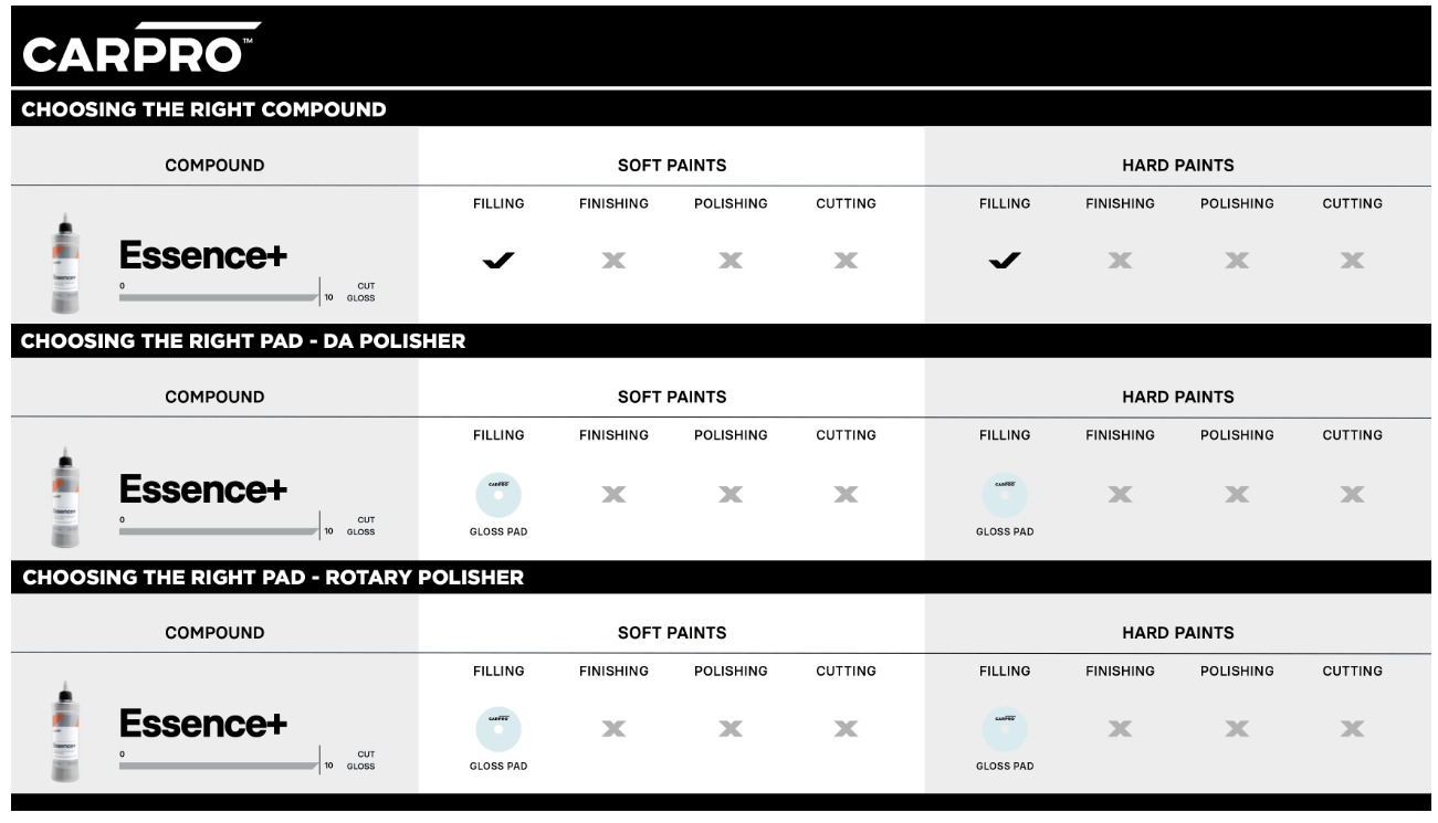 CARPRO Essence Plus is not Essence. Where Essence could go under the coat, Essence Plus can go over the coat. Essence Plus is a unique, easy to use, SiO2 coat made from a distinct blend of ceramic coat repair agents, high gloss quartz resins, and hydrophobic nanoparticles!