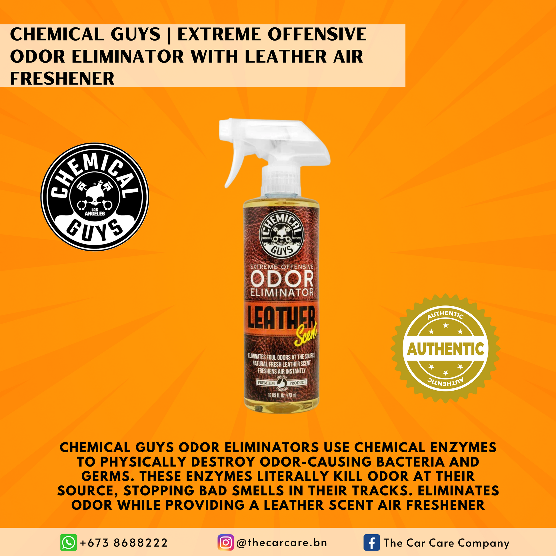 When strong, offensive odors dampen the smell and dampen the mood entirely, Chemical Guys Odor Eliminators defeat those stubborn odors at their source to completely eradicate their existence. Our odor eliminators’ long-lasting formula use active enzymes that neutralize odor-causing germs and bacteria, leaving behind only the pleasurable scent of premium leather.