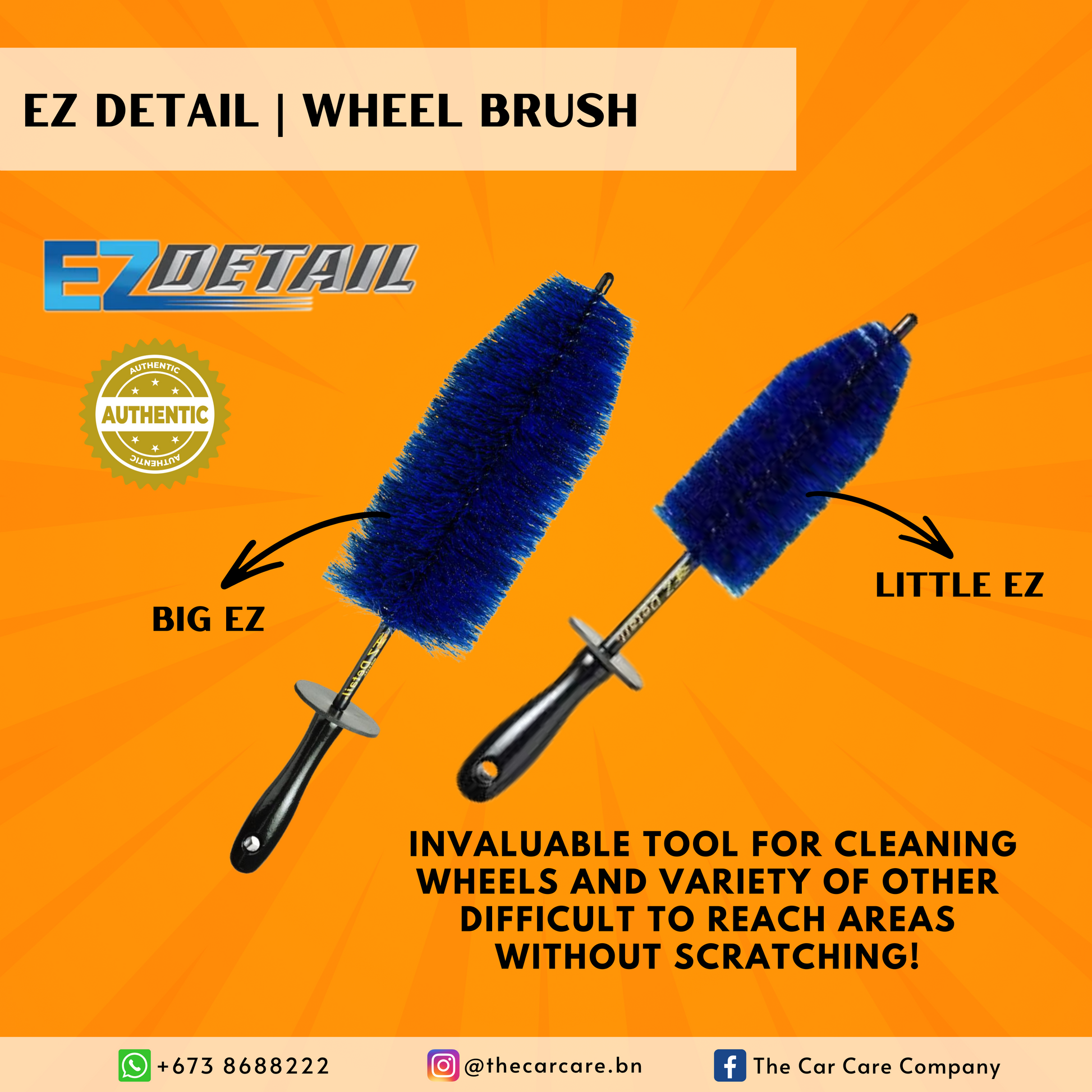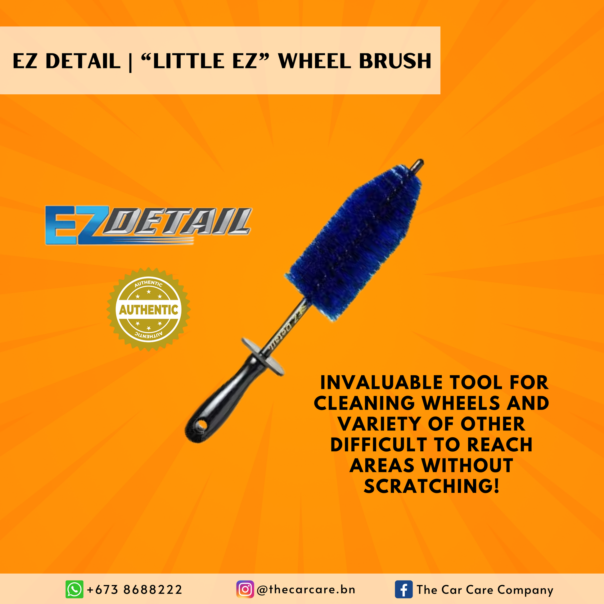EZ Detail little EZ Wheel Brush is designed for quick, effective cleaning of all clear coated, anodised, polished, aluminium, painted, powder coated and chrome wheels. The bristles are stiff enough to remove stubborn brake dust while remaining soft enough for delicate wheel finishes.