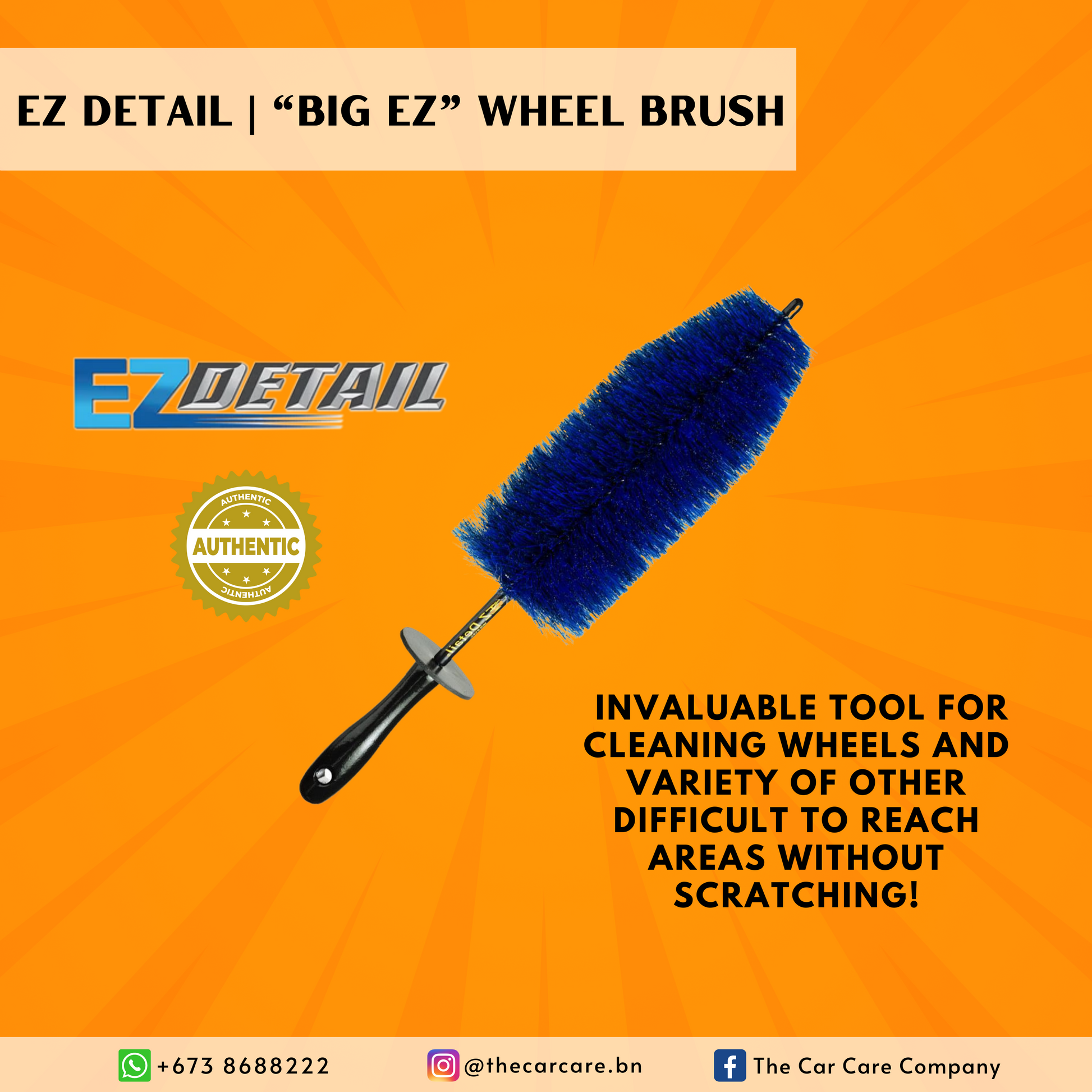 EZ Detail Big EZ Wheel Brush is designed for quick, effective cleaning of all clear coated, anodised, polished, aluminium, painted, powder coated and chrome wheels. The bristles are stiff enough to remove stubborn brake dust while remaining soft enough for delicate wheel finishes.