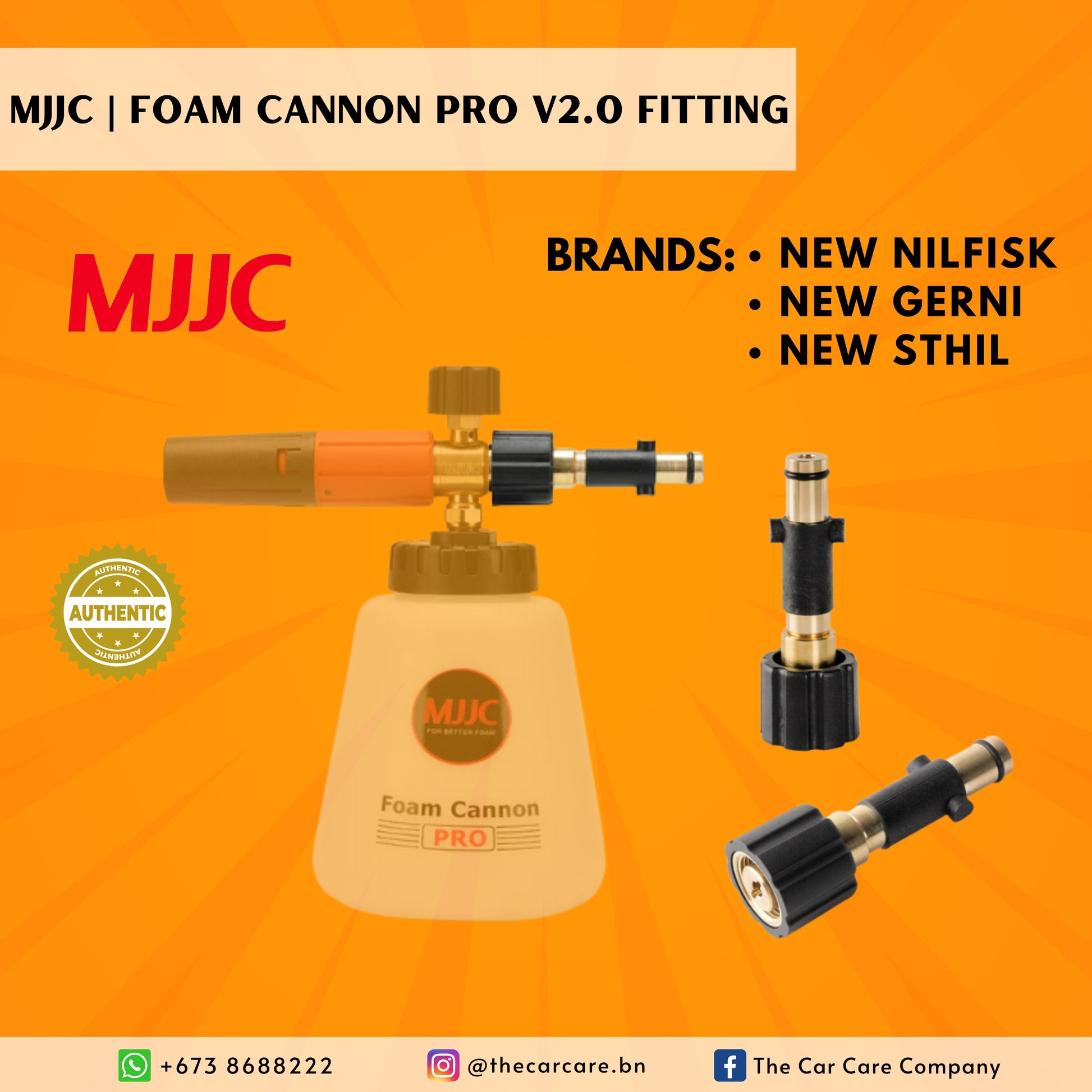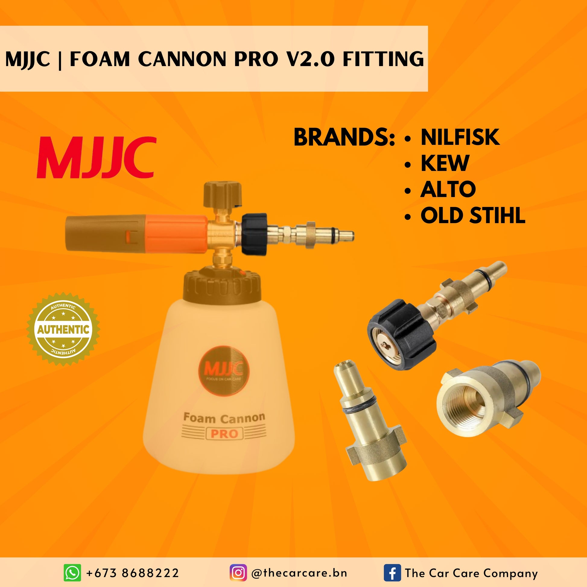 Foam Cannon Pro V2.0 is powered by MJJC’s new generation foam technology. This new technology is stronger and creates more, thicker foam with less soap, even with lower powered pressure washers. We offer different fittings to allow you to connect this foam cannon to most pressure washers. This allows them to attach to your pressure washer easily, and makes changing attachments easier and faster.