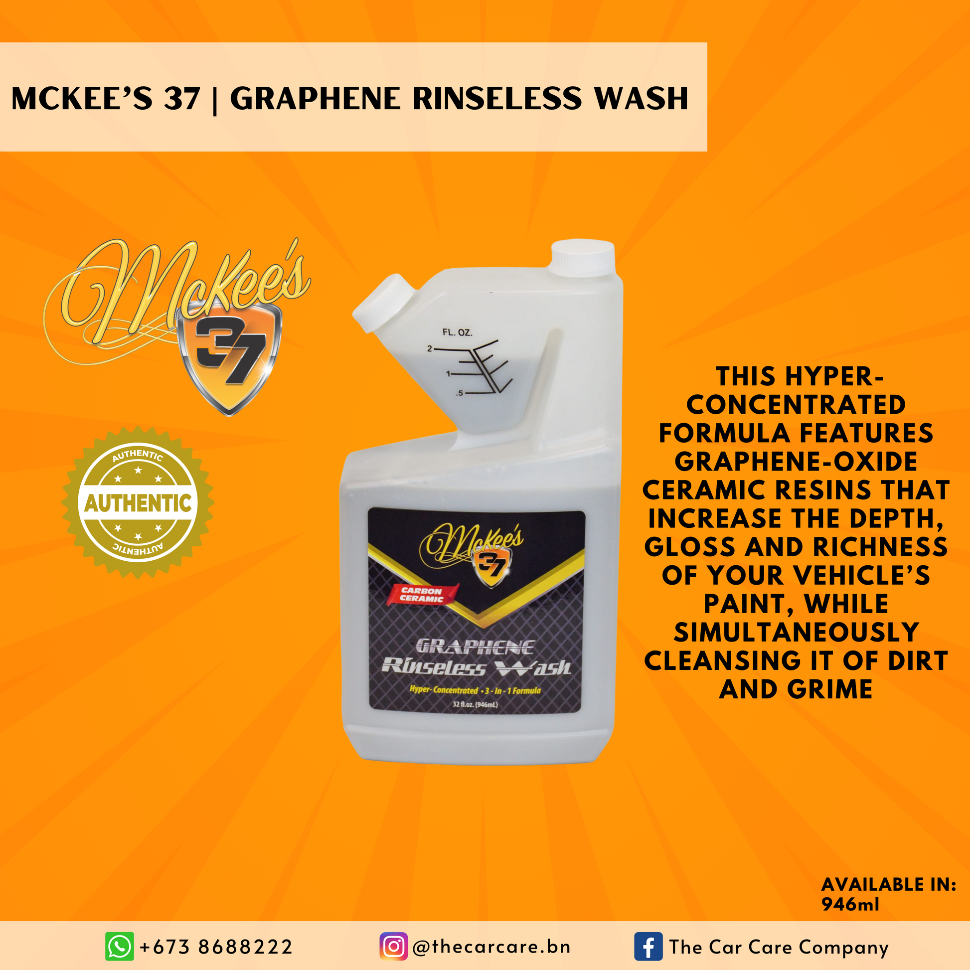 McKee's 37 Graphene Rinseless Wash is our most technologically advanced rinseless wash to date. This super-slick formula successfully combines graphene-oxide ceramic resins with our proprietary blend of surfactants that work together to clean, shine, and protect your vehicle. Graphene Rinseless Wash is perfect for maintaining a vehicle with a graphene ceramic coating, though you can also use it on a non-graphene ceramic coated vehicle as well. Create your own waterless wash or detail spray by diluting 1/2 ounce of Graphene Rinseless Wash into a spray bottle with 22 ounces of water. Regardless of its application, Graphene Rinseless Wash will not streak, smear, or haze. The finish it leaves behind will be brilliantly glossy and slick.