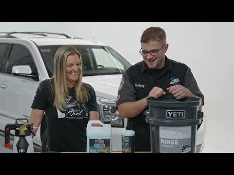 The Absolute Rinseless Wash experience is best approached when the vehicle is cool and dry to the touch. Shade is preferred, but can be safely used in direct sunlight with washing one section at a time. Add one ounce of Absolute to 2 Gallons of water (256:1 dilution) in a wash bucket. Submerge a wash mitt or multiple microfiber towels and mix the product thoroughly. Squeeze excess product from wash media and begin washing from top to bottom of the vehicle, dipping back into the wash bucket often.