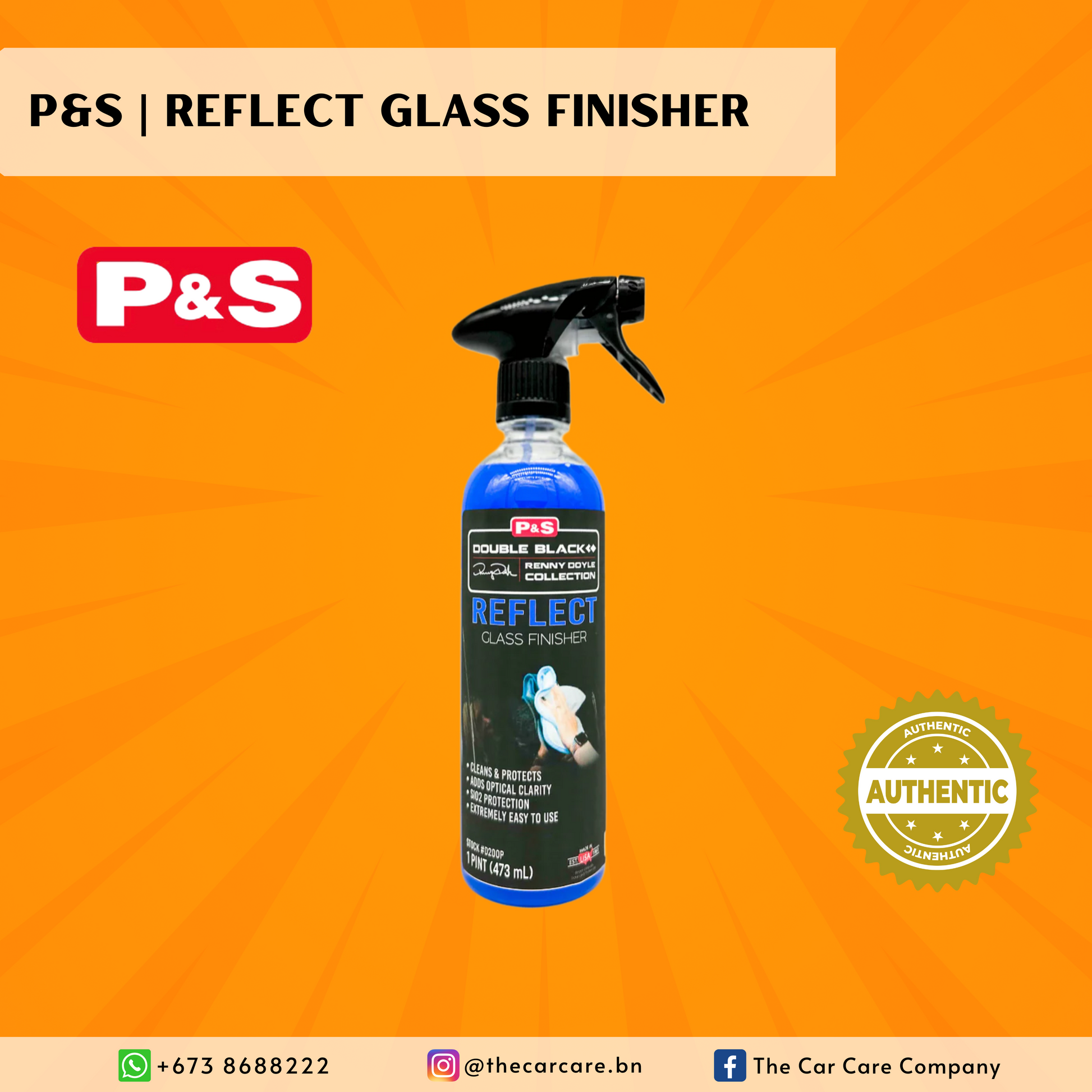 P&S Reflect Glass Finisher is engineered to achieve unmatched clarity and protection for glass surfaces, inside and out. REFLECT not only cleans but also enhances gloss with a protective SiO₂ (silicon dioxide) layer that repels water, minimizes UV degradation, and prevents build-up, making glass surfaces remarkably easy to clean over time. This premium formula provides a crystal-clear, streak-free finish in a single application, elevating clarity and keeping glass surfaces pristine for longer.