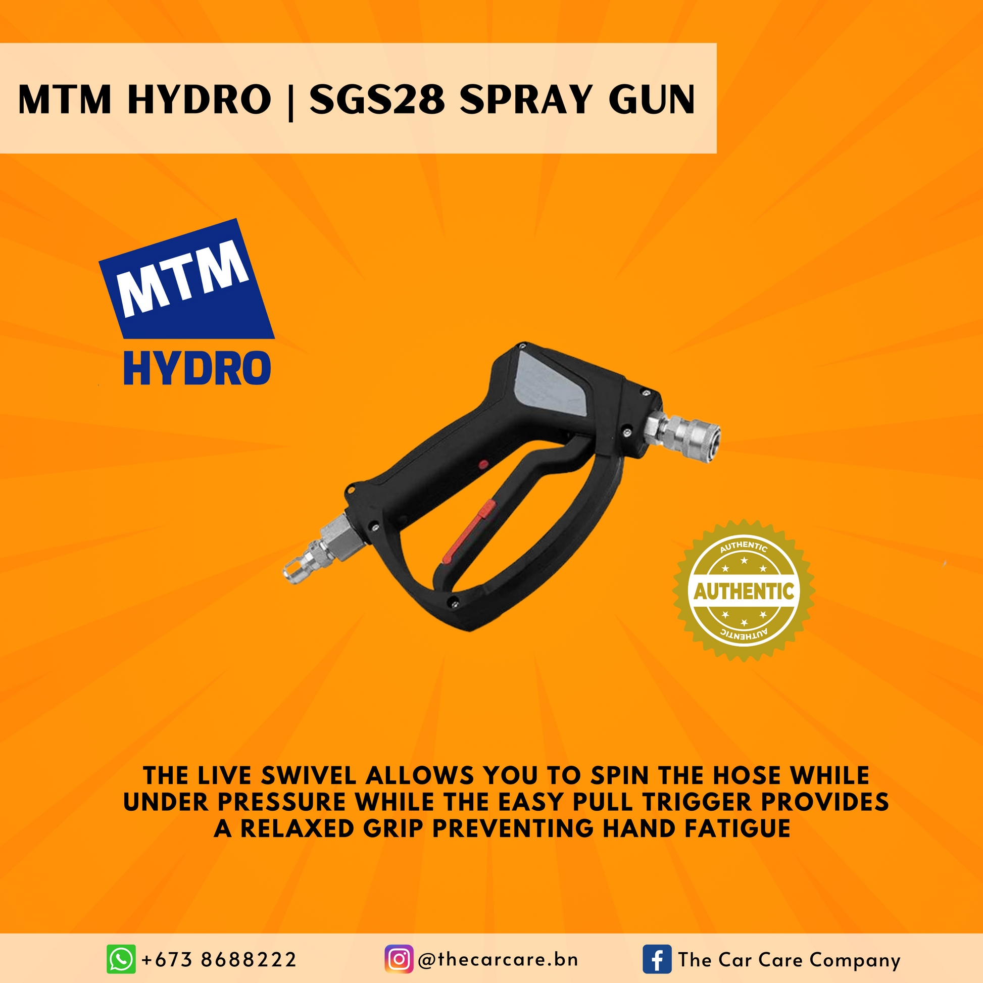This premium MTM Hydro SGS28 Spray Gun offers a Ready-to-Use solution for professionals looking to upgrade their gun with the best pressure washing accessories on the market. This SGS28 Spray Gun comes with integrated swivel, and most importantly, multiple adapter options to ensure the kit will fit flawlessly on a variety of pressure washer hoses. The all new 15mm Twist Plug adapter offers you a consolidated option to adapt to proprietary M22 fittings that, previously kept you from upgrading the stock guns provided by the manufacturer. This premium setup offers you three options to quickly connect to the hose outlet and cross multiple lines of pressure washers from commercial grade to residential washers in big box stores. Be sure to note the contents shown in the image before purchasing as your washer may have a different outlet fitting at the hose.