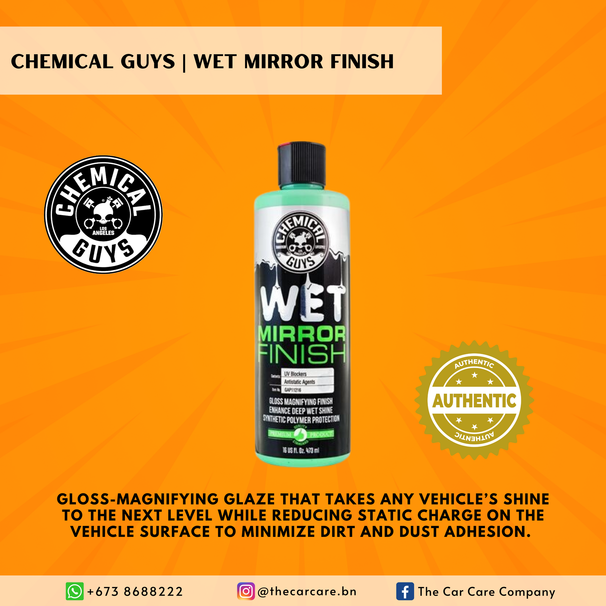 Wet Mirror Finish is the unique gloss-magnifying glaze that takes any vehicle’s shine to the next level while reducing static charge on the vehicle surface to minimize dirt and dust adhesion.